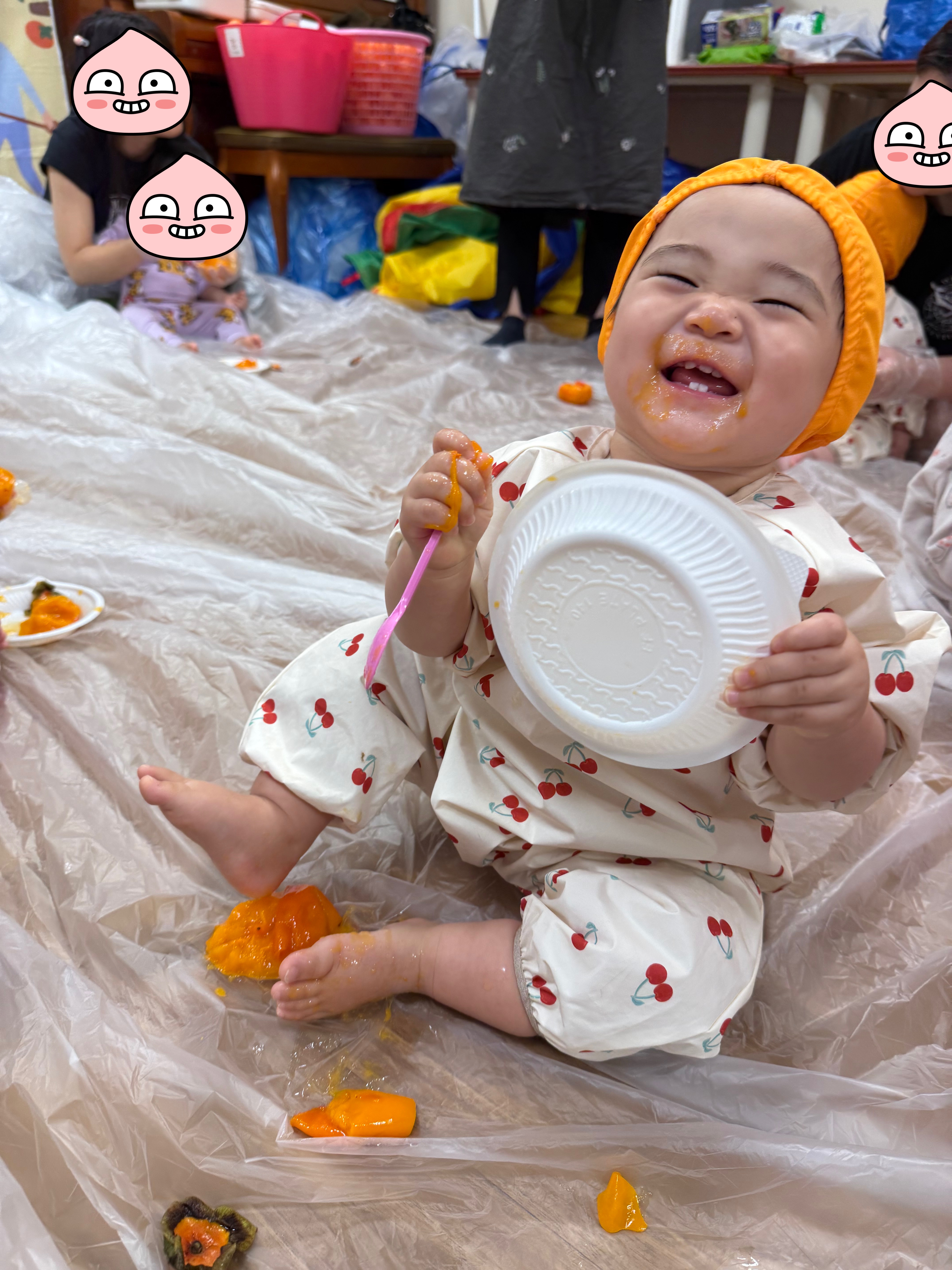 최근에 홍시 수업때 선생님께서 직접 따오신 홍시....진짜 잊지못할꺼에요!!! 저희 아기가 아주아주 맛있게 먹었는데 항상 아이좋아콩콩콩 수업시간에 새로운 과일을 접하고 난 뒤 집에와서도 간식으로 제공해주면 너무 잘 먹는답니다!!