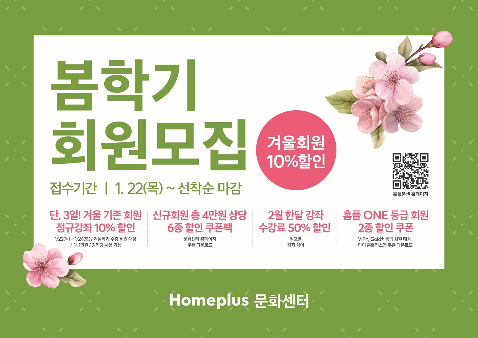 ※ 수강 신청 시 「마이홈플러스 포인트 적립」 을 놓치지 마세요.