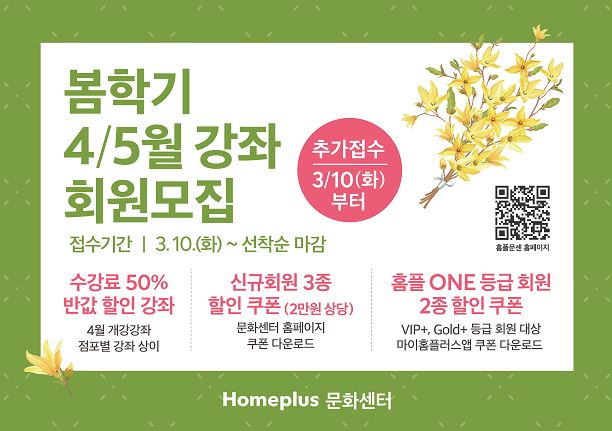 ※ 수강 신청 시 「마이홈플러스 포인트 적립」 을 놓치지 마세요.