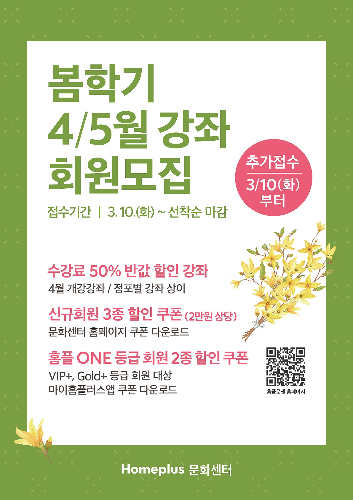 ※ 수강 신청 시 「마이홈플러스 포인트 적립」 을 놓치지 마세요.