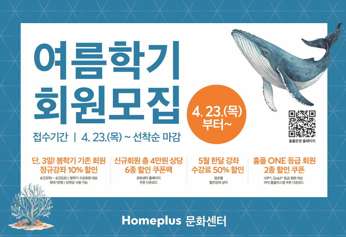 ※ 수강 신청 시 「마이홈플러스 포인트 적립」 을 놓치지 마세요.